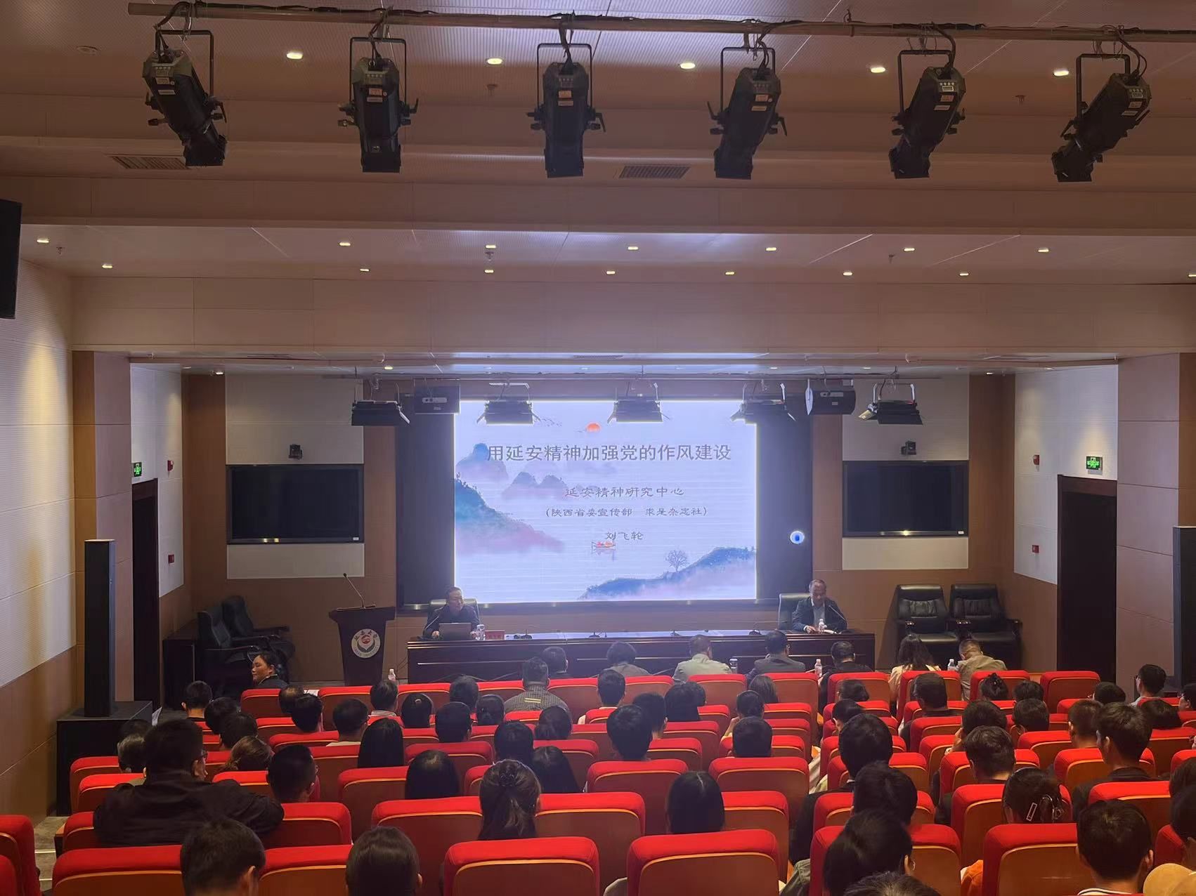 5月15日下午,公司在图书馆一楼报告厅举行深入贯彻中央八项规定精神学习教育辅导报告,陕西省延安精神研究中心办公室兼科研部主任刘飞轮以“用延安精神加强党的作风建设”为题作专题辅导。公司和建工公司师生共180余人参加,报告会由建工公司党委书记赵耀锋主持。