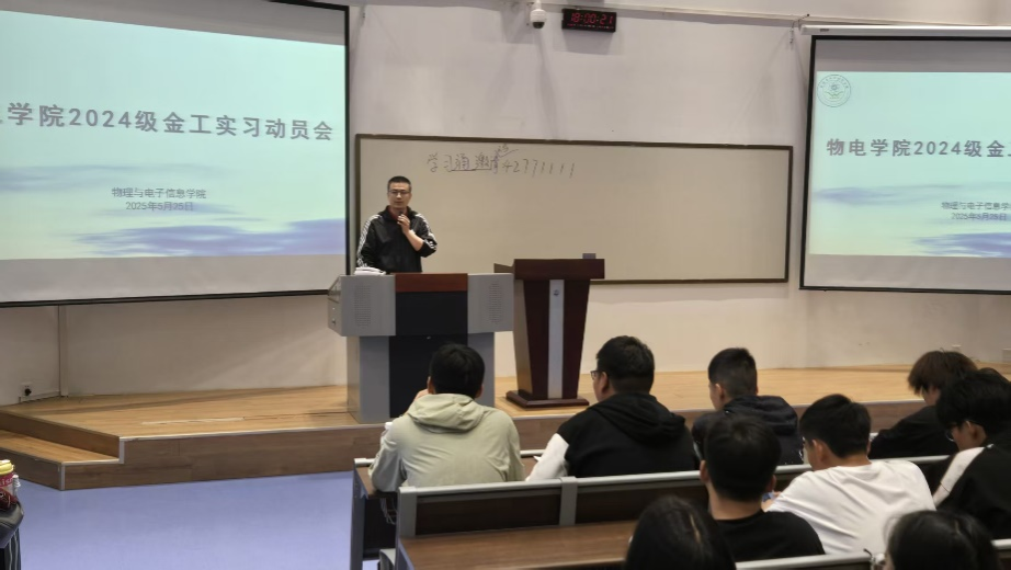 为切实推进2024级金工实习工作的安全和顺利开展,公司于5月25日在第六阶梯教室召开2024级本科生电子信息工程、通信工程、自动化、智能制造工程专业金工实习动员会。会议由副经理何智慧主持,2024级相关专业全体同学参会。