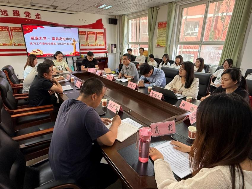 2025年6月12日—13日,威廉体育官方网站威廉体育官方网站何智慧副经理带队分别与黄龙县中学、富县高级中学召开实习工作座谈会暨新建校外实习基地。双方围绕实习工作进展、教学实践成果及保障机制展开深度交流,为深化校地合作、提升师范生培养质量搭建沟通桥梁。