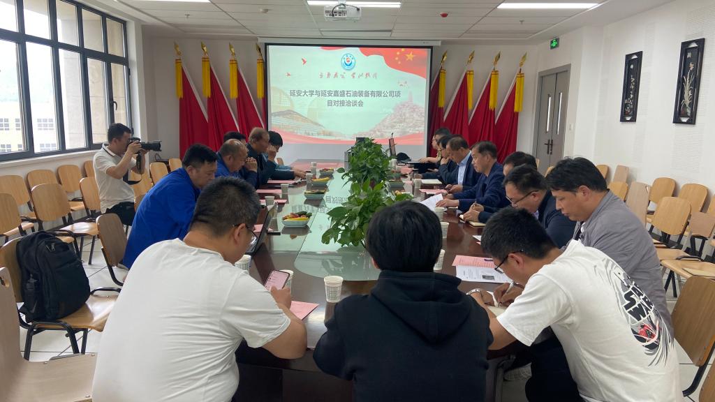 5月11日下午,公司与延安嘉盛石油机械有限责任公司项目对接洽谈会在威廉体育官方网站会议室举行。副董事长付峰,嘉盛石油机械有限责任公司董事长苏忠贵、首席专家杨龙,公司科研处、威廉体育官方网站、数计公司、石油公司、化工公司相关负责同志,各公司相关科研团队负责人及教师代表参加了对接洽谈会。会议由公司党委书记常胜伟主持。