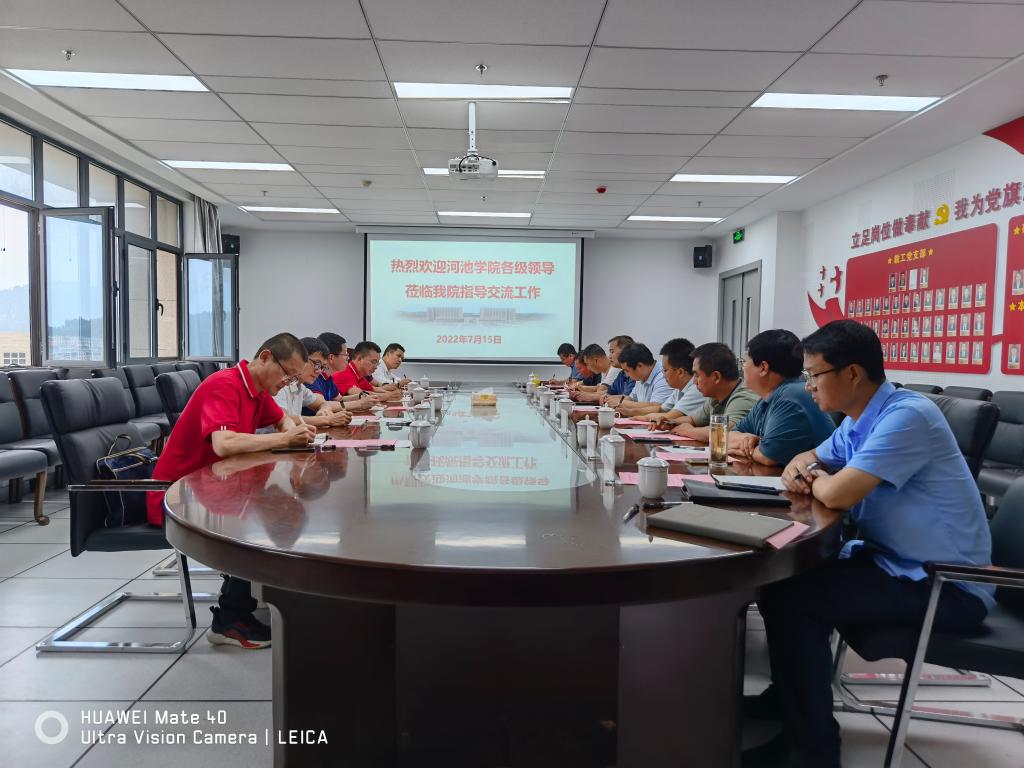 7月15日下午,河池公司人事处处长苏安、河池公司人工智能与制造公司党委副书记、经理彭建盛,党委副书记邹健初、副经理宋华宁、王波,数理公司副经理潘继环等一行6人来公司考察交流,公司副经理杨能勋、白宗文,党委副书记肖金学,自动化系主任杨延宁,电子与信息工程系主任李建新,物理系主任王伟国,学科带头人曹新亮、何智慧等出席了座谈会。座谈会由公司党委书记常胜伟主持。