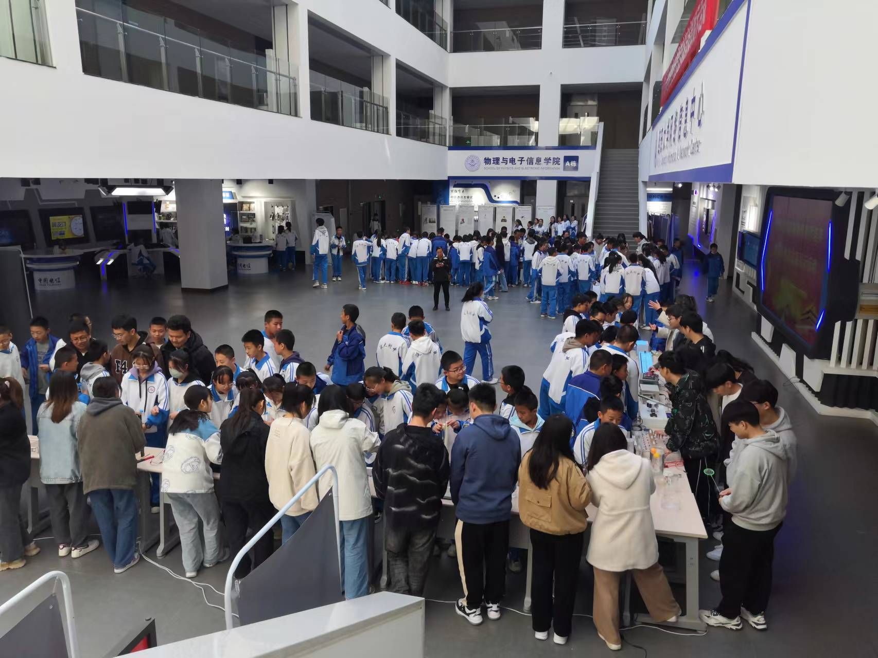 本次活动包括员工自制中学物理教具作品展示和基础物理实验室参观两部分。教具作品展示在信息大厦2楼大厅进行,本次展示的教具作品是公司员工制作的中学物理实验自制教具,共计30余件。活动中公司物理20全体员工分组担任讲解员,分别为延大附中、博文中学两所公司500多名初中员工讲解自制教具实验原理、演示物理实验现象并指导中员工亲自动手操作体验。参观完自制教具后,在物理20班员工的带领下,两所中学初中生又分批参观电磁学、力热学实验室。活动结束后,两校师生对于公司员工在本次活动中的积极表现给予了高度评价。