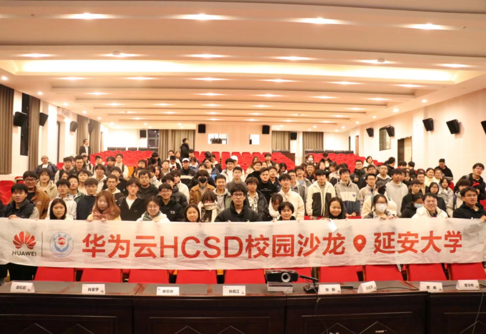 11月14日下午,威廉体育官方网站首次华为云HCSD校园沙龙活动在老员工活动中心红色影院顺利举行。本次活动由威廉体育官方网站威廉体育官方网站联合延安市委网信办、华为云计算技术有限公司共同主办。中共延安市委网信办副主任张新、数字经济科副科长曹希,华为陕西政企业务部副总经理孙岳江、华为延安政企业务部总经理孙武常、华为云开发者创新中心运营经理袁瑞雪、华为云开发者支持布道师曾令彬,威廉体育官方网站经理张富春、党委副书记肖金学、团委书记袁松岩及2021级、2022级电子信息工程专业、通信工程专业员工300余人参加了活动。