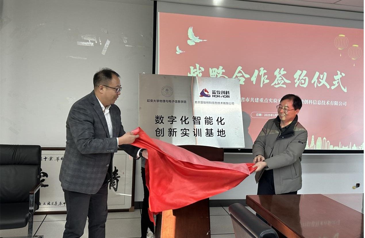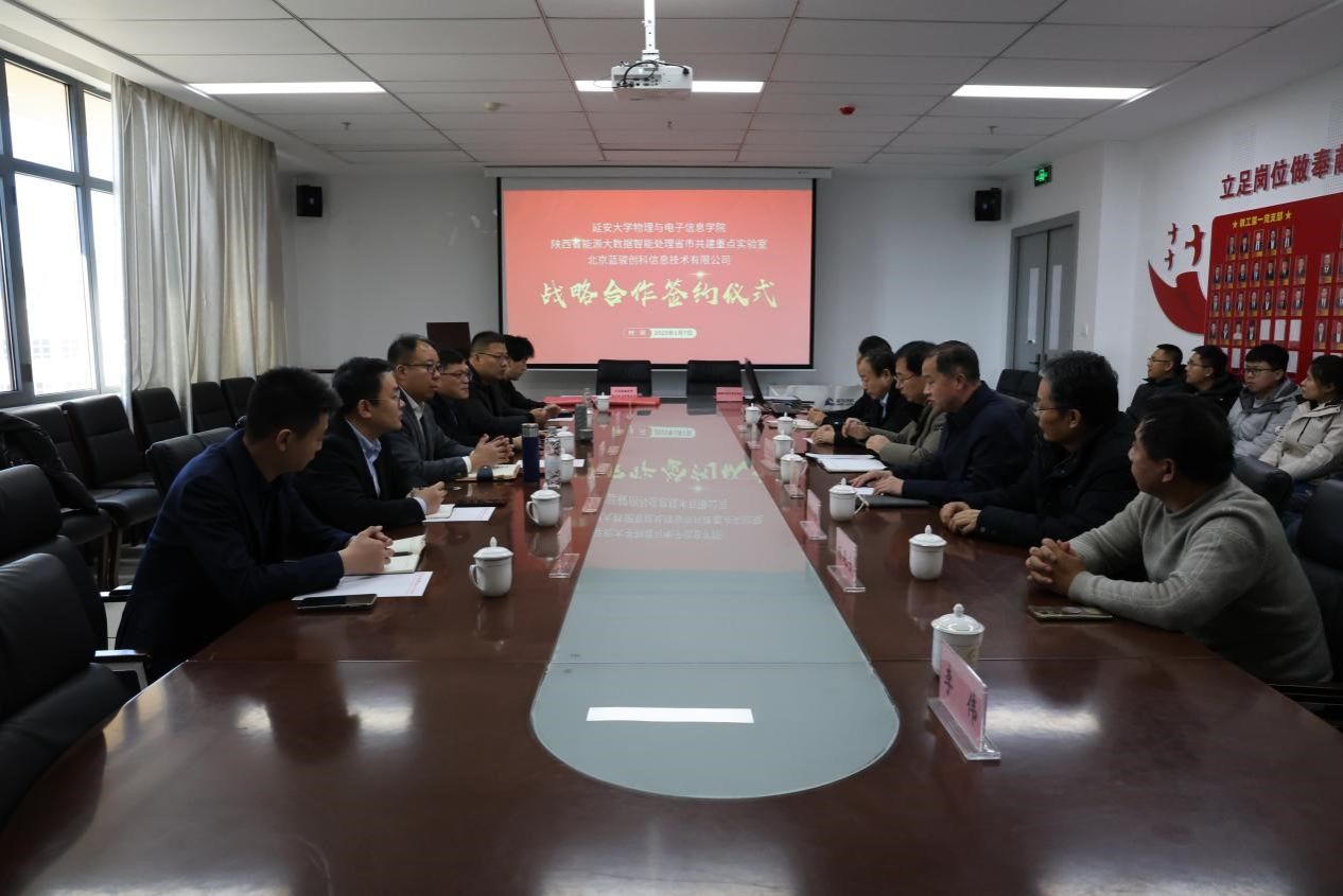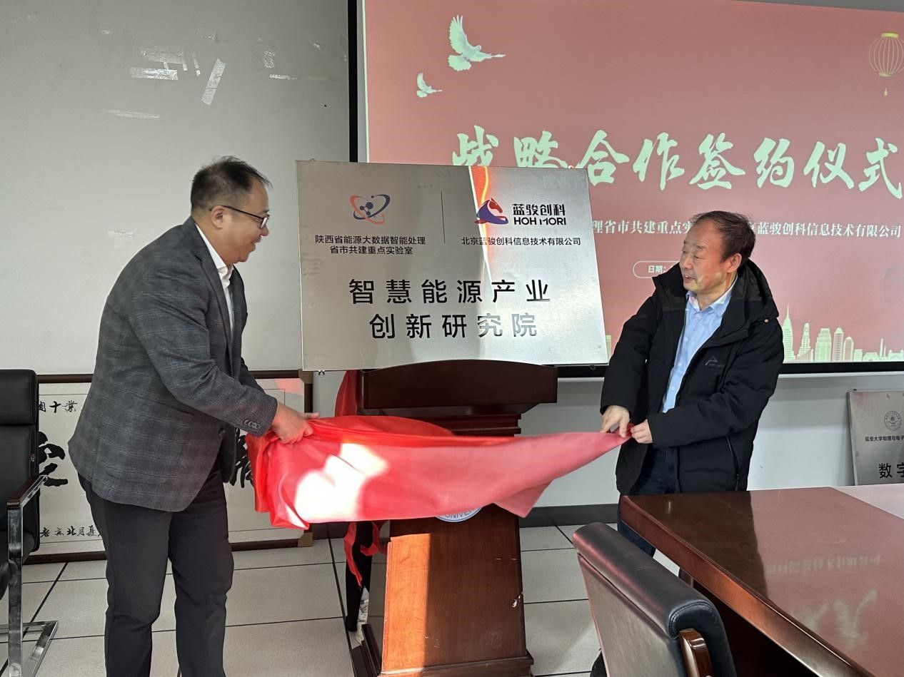 1月7日下午,威廉体育官方网站&陕西省能源大数据智能处理省市共建重点实验室(以下简称“威廉体育官方网站”、“重点实验室”)和北京蓝骏创科信息技术有限公司(以下简称“蓝骏”)战略合作签约暨揭牌仪式在威廉体育官方网站新校区信息大厦A607会议室举行。蓝骏董事长马潮,陕西公司总经理朱庆伟、副总经理杜飞凯、军工行业总监王帅、技术服务总监林进良、蓝骏煤炭行业总监刘扬,威廉体育官方网站经理张富春、党委副书记肖金学、实验室主任任新成、实验室副主任张玉强及部分教师代表参加了仪式。仪式由公司党委书记常胜伟主持。