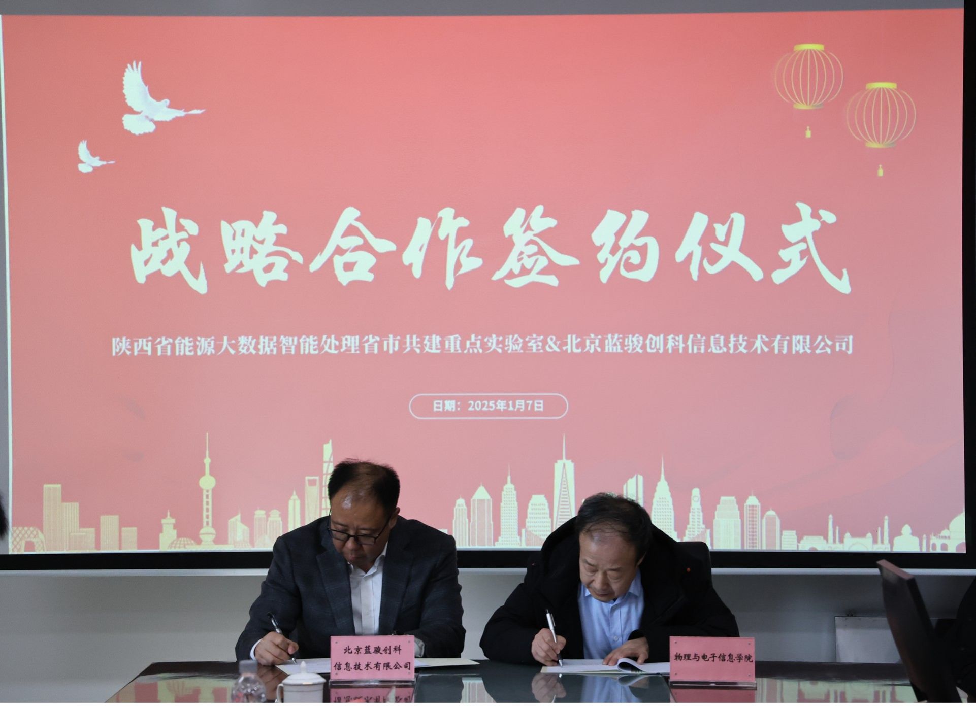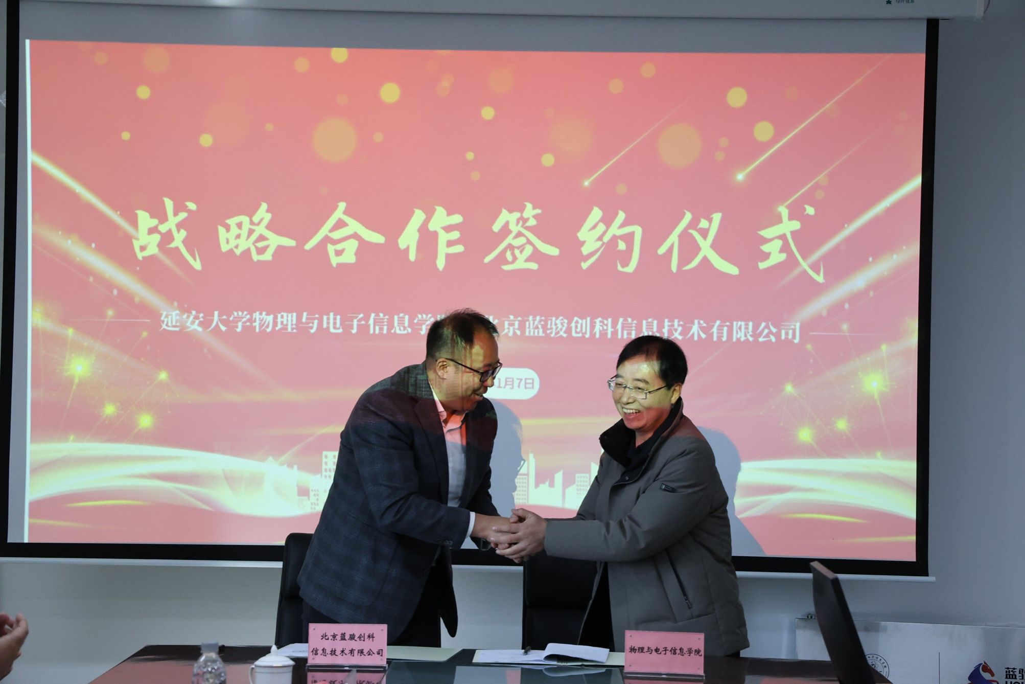 任新成主任与马潮董事长分别代表重点实验室与北京蓝骏创科信息技术有限公司共同签署了《重点实验室-蓝骏战略合作框架协议》。