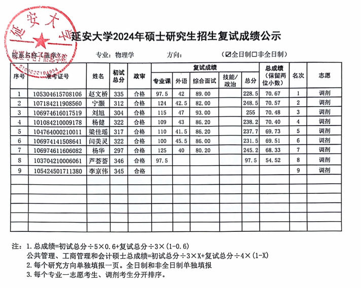 依照公司2024年硕士研究生复试工作实施方案,安排在2024年4月10日的物理学调剂考生复试工作已经圆满结束,现将具体的复试成绩进行公示,公示时间为十个工作日。