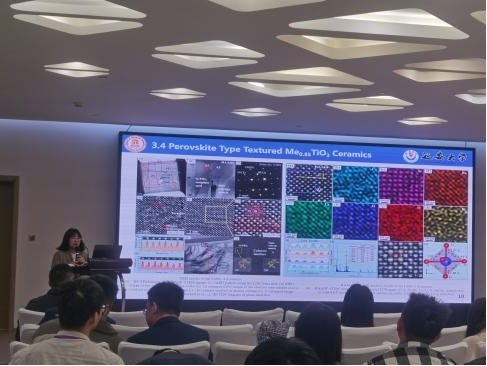 公司青年教师曹舒尧、张萍分别作题为《铌酸锶钾基陶瓷光致变色反应及光吸收行为的可控调制》、《非化学计量比高熵织构陶瓷的微观结构调控与热电性能》的邀请报告。曹舒尧副教授及张萍副教授作为分会场主持人,分别主持了13日上午“敏感材料及其应用”及“热电材料”分会场的学术报告。